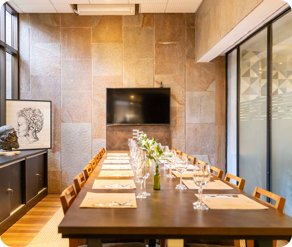 No Sale Pepe, temos uma sala exclusiva, climatizada, com TV e capacidade para até 16 pessoas. Ideal para apresentações, reuniões estratégicas ou encontros com clientes.